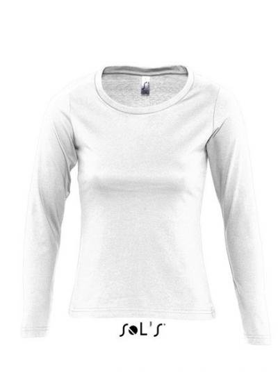 MAJESTIC –WHITE WOMEN'S ROUND COLLAR LONG SLEEVE T-SHIRT