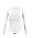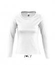 White women's round collar long sleeve t-shirt. Style classic. Low neckline. Fitted cut. Reinforcing tape at neck. Cut and sewn