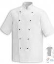 Μπλούζα μαγείρων κοντομάνικι με διαπνέον ύφασμα στη πλάτη “Comfort” για την απομάκρυνση υγρασίας και για καλύτερο αερισμό του σώματος. Κλείσιμο με περαστά κουμπιά “πιπίλα”.