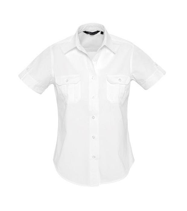 Γυναικείο κοντομάνικο πουκάμισο σε εφαρμοστή γραμμή με δύο εξωτερικές τσέπες που κλείνουν με καπάκι. *(ΤΟ ΠΡΟΪΟΝ ΔΕΝ ΕΙΝΑΙ ΕΤΟΙΜΟΠΑΡΑΔΟΤΟ, Η ΔΙΑΘΕΣΙΜΟΤΗΤΑ ΚΑΙ Η ΠΑΡΑΔΟΣΗ ΕΞΑΡΤΑΤΑΙ ΑΠΟ ΤΟΝ ΑΝΤΙΣΤΟΙΧΟ ΠΡΟΜΗΘΕΥΤΗ)