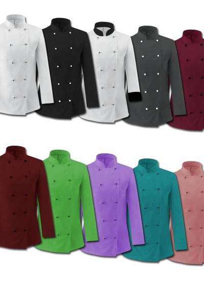 Γυναικεία μπλούζα μαγείρων μακρυμάνικη, κούμπωμα με περαστό κουμπί πιπίλα. (*Υπάρχει δυνατότητα επιλογής χρώματος κουμπιού.)