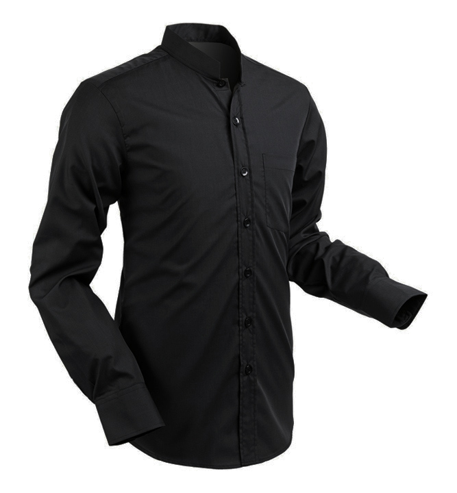 Πουκάμισο ανδρικό μακρυμάνικο με μάο γιακά. Κλασσική ίσια γραμμή και με μία τσέπη δεξιά στο στήθος.