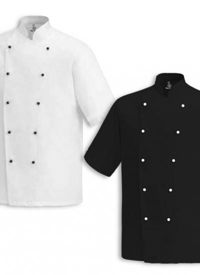 Μπλούζα μαγείρων κοντομάνικι, κούμπωμα με περαστό κουμπί πιπίλα από ύφασμα ελαφριά καπαρντίνα. (*Υπάρχει δυνατότητα επιλογής χρώματος κουμπιού.)