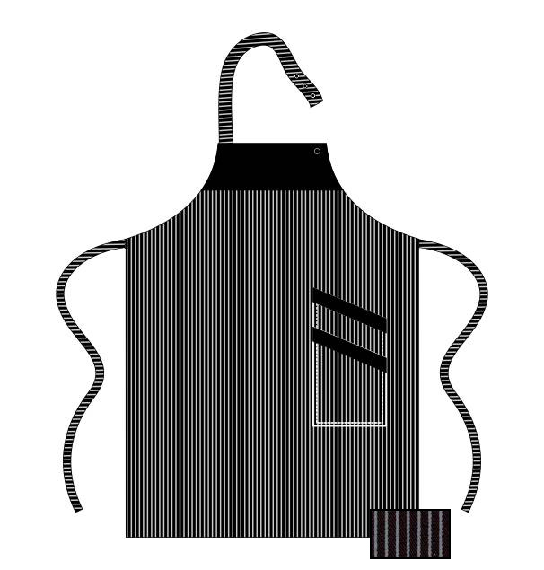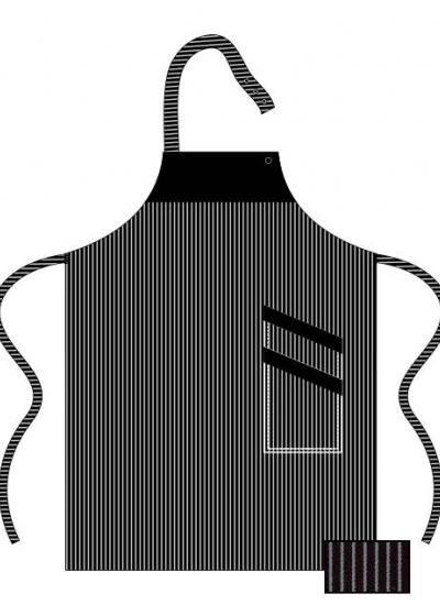 Ποδιά ανδρική μπροστέλα με ξεχωριστή ραμένη φάσα στο πάνω μέρος της ποδιάς και στις τσέπες. Με διπλή τσέπη στο πλάι. Λουράκι λαιμού με κούμπωμα τρούκ στη μία πλευρά. Διαστάσεις: 87x70εκ.